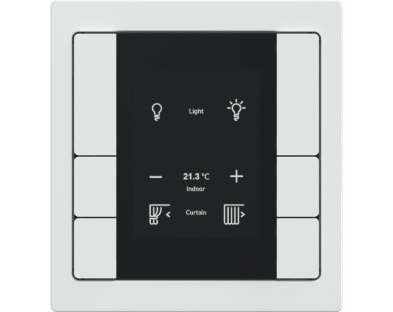 Discover the future of KNX control with Schneider Electric's innovative dynamic labelling for KNX push buttons. This revolutionary product combines superior functionality with unrivalled flexibility, perfect for residential and commercial applications. Dynamic labelling, avoid static paper labels. The integrated display allows you to customise icons and text for each button, easily programmed via ETS software. Optimal flexibility, our unique 16-combination rocker concept adapts to your needs. Change functions on the fly without rewiring, ideal for constantly changing spaces. Energy efficient, the screen automatically turns off after a set time, saving energy and extending the product's lifespan. A proximity sensor wakes up the screen when approached for seamless interaction. Enhanced user experience, time and date display as a screen saver, or locking specific functions for added security (e.g., deactivating shutters during high winds). Scalable and adaptable, program up to 8 buttons with various functions, easily modified by your installer using ETS software for ultimate control. Crystal-Clear Communication, the high-resolution display ensures clear visibility of icons and text, promoting intuitive use, especially in environments with poor lighting.