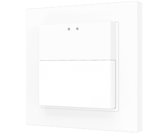 Motion detector for in-wall flush mounting into 55 x 55 mm frame with no button (Presentia W0 v2), one (Presentia W1 v2) or two (Presentia W2 v2) buttons with customisable backlit icons. Fitting with Tecla 55, Flat 55 family and Zennio ZS55 frames, switches and sockets. Detection area of 180º and up to 10 meters length of detection. It includes several channels to be configured for lighting switching control according to luminosity threshold or according to motion detection only. It has two independent sensors whose sensitivity settings can be adjusted for each sensor individually. Master/slave configuration allows using several detectors for larger areas. Installation in standard mounting box with 55 x 55 frames of 1/2/3/4 module (white, anthracite or silver). Frame not included.