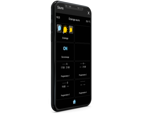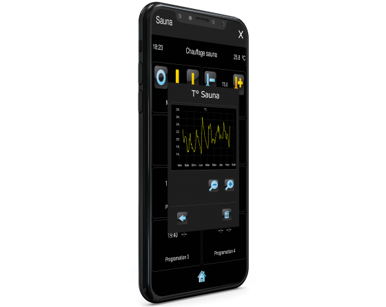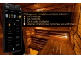 Home automation control of a sauna, via touch screen on site, or remotely via smartphone.